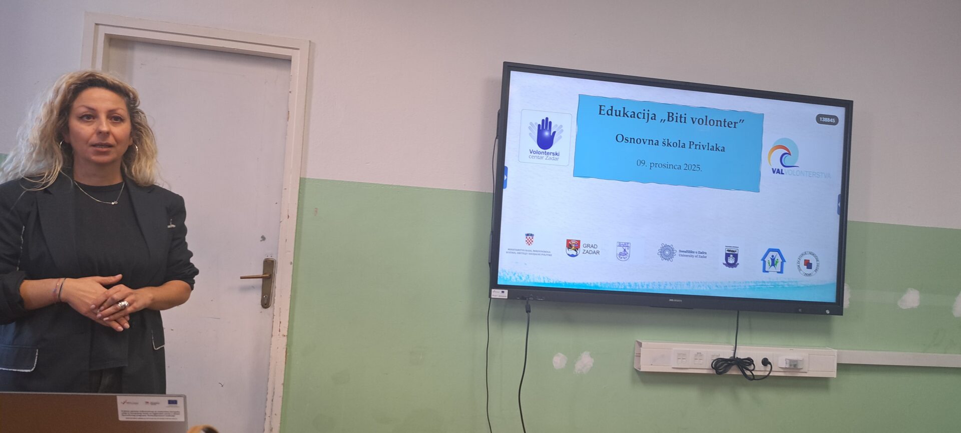 Volonterski centar Zadar 9. prosinca 2025. godine održao je edukaciju „Biti volonter“ učenicima 7. i 8. razreda. Ovom edukacijom učenici su se upoznali sa svim aspektima volontiranja, svojim mogućnostima, pravima i obvezama koje ostvaruju volontirajući u zajednici.